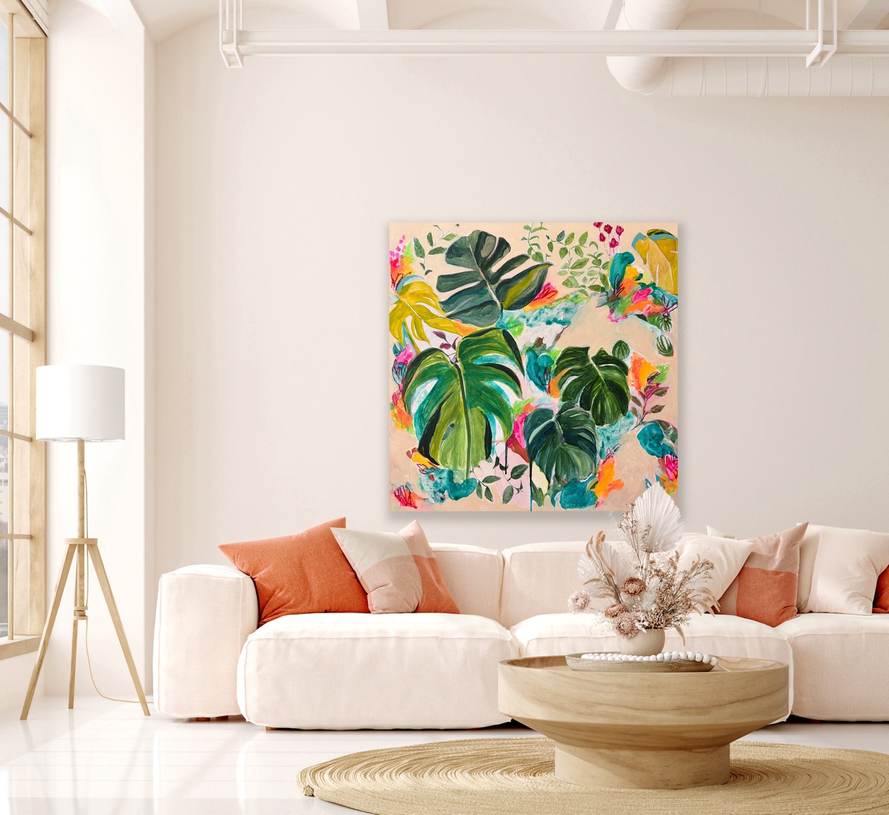 BEAUTIFUL BLOOMS Colourful Interior Painting, acrylic on canvas, framed in raw timber, 38cmx28cm
