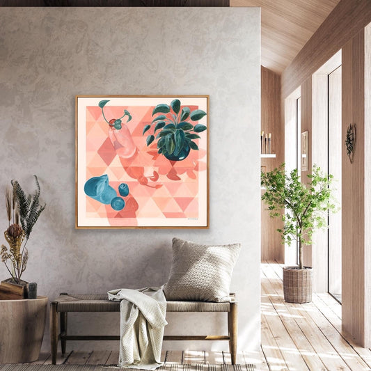 Colourful interior original artwork, Garden State, framed, acrylic on canvas, mini interior, 44cmx33cm