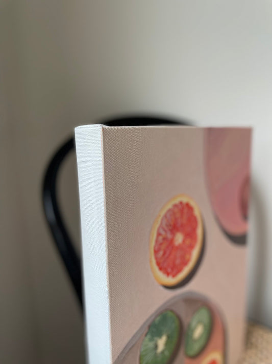 FRUIT SMOOTHIE Original large pink artwork, acrylic on canvas painting, framed in raw timber 65cm x 95cm By Vanessa McMahon-Maver