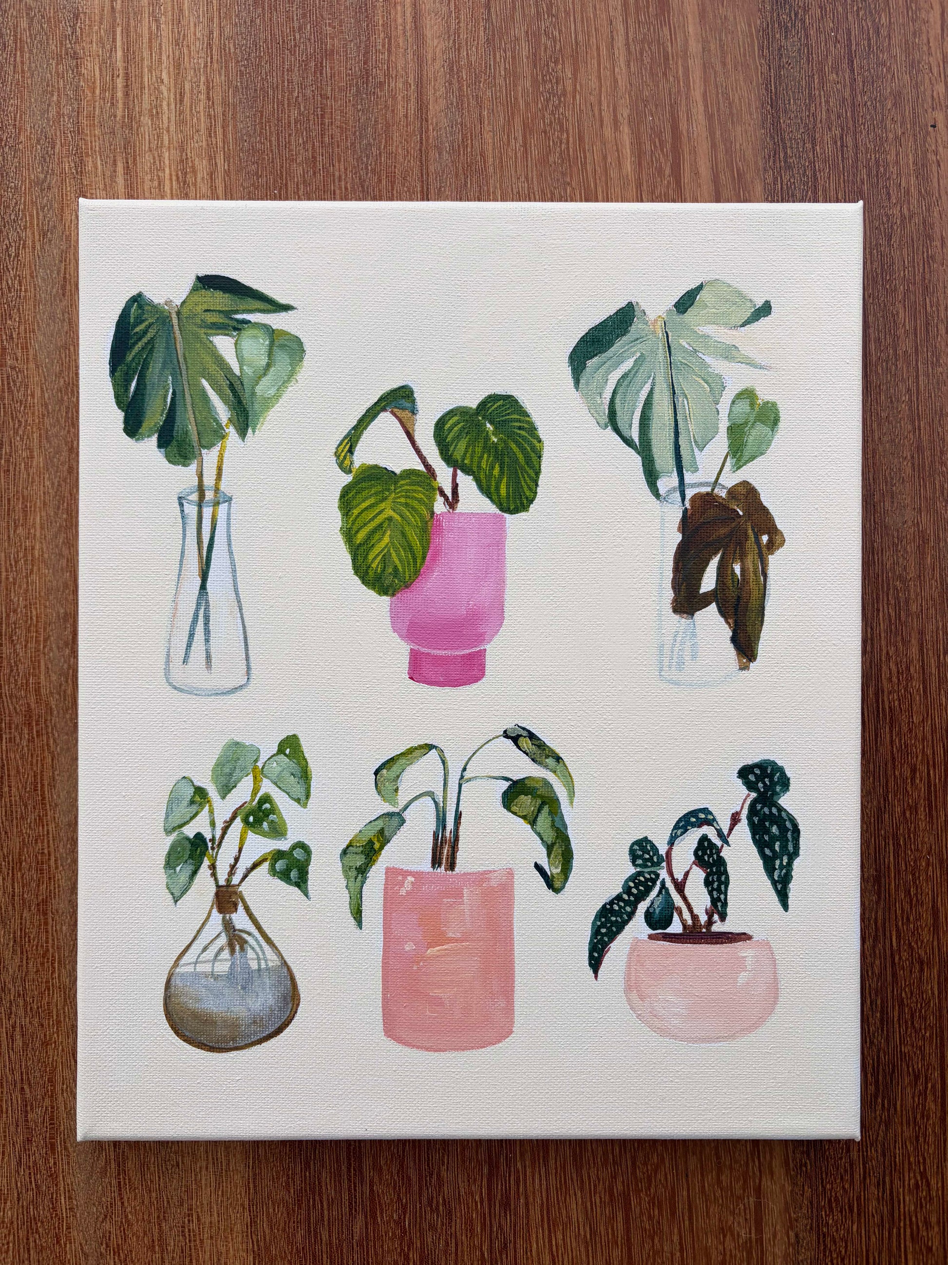 Vanessa will work with you to develop your very own mini plant illustrative style painting, complete with professional canvas.