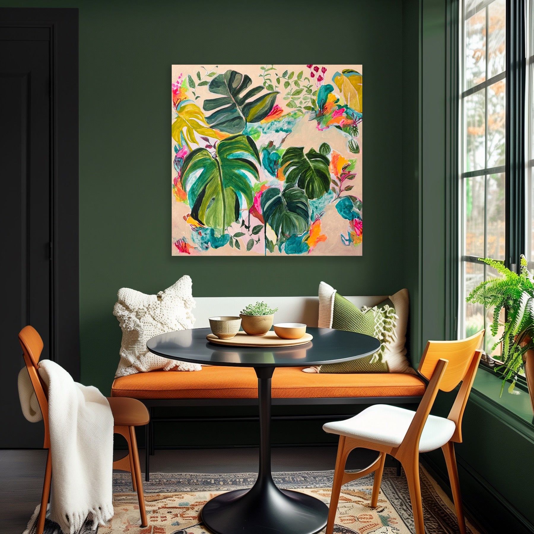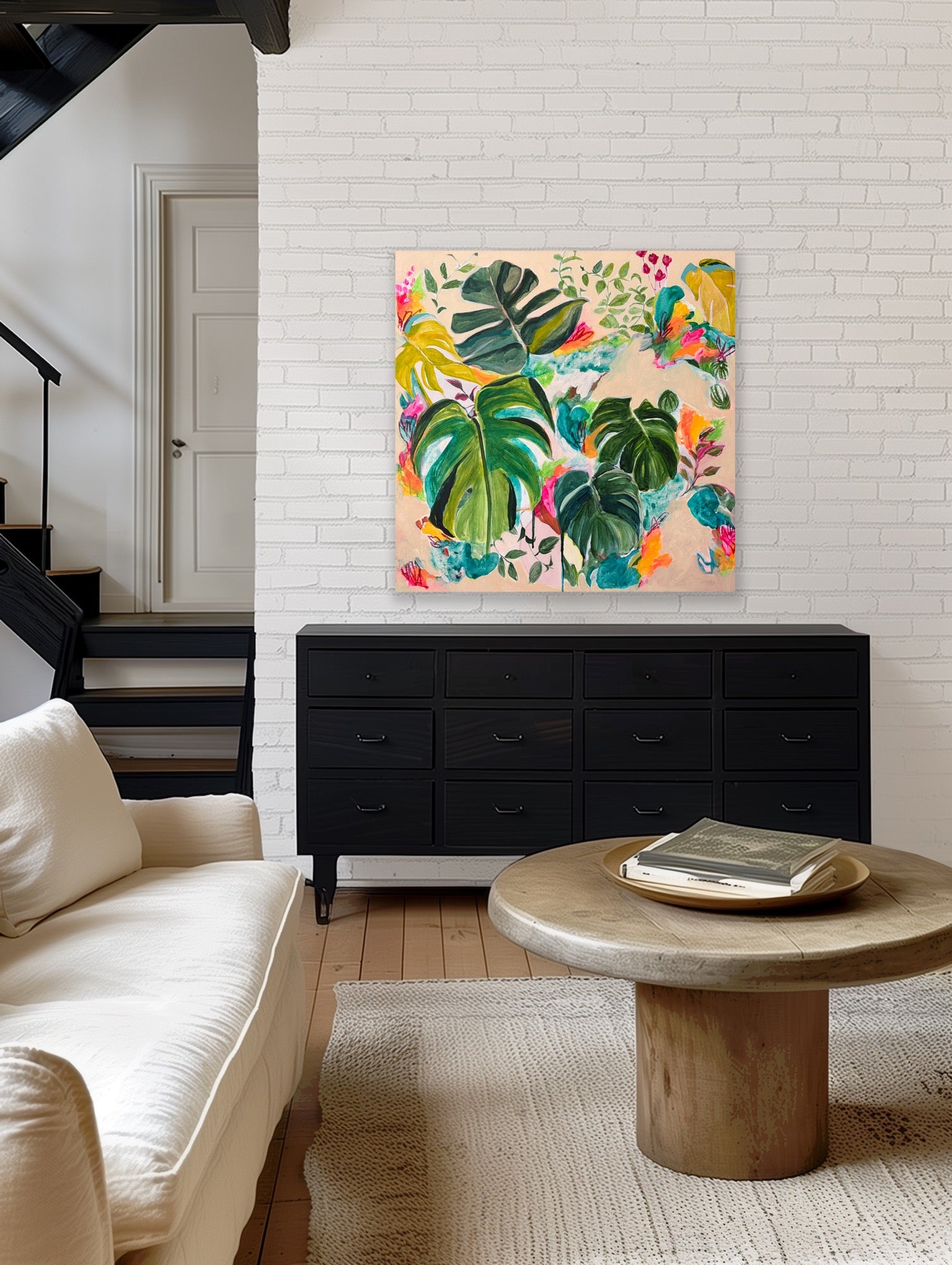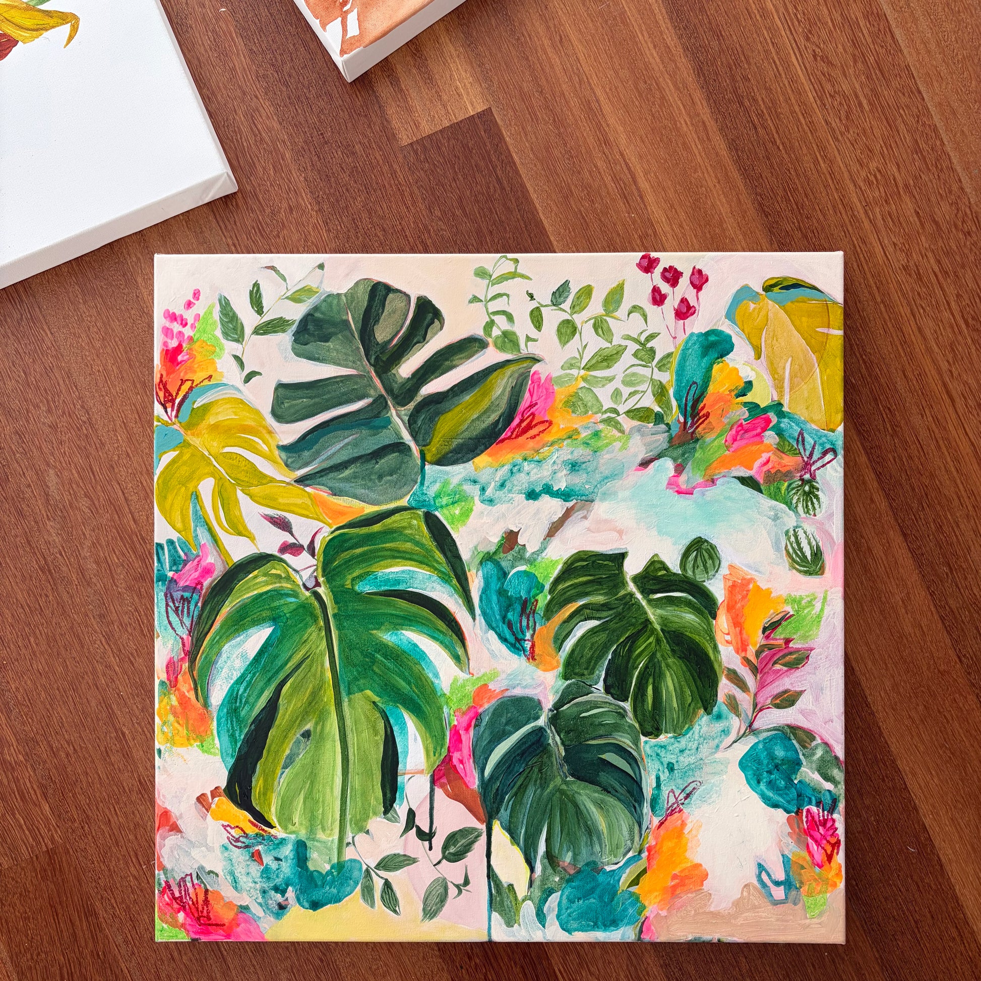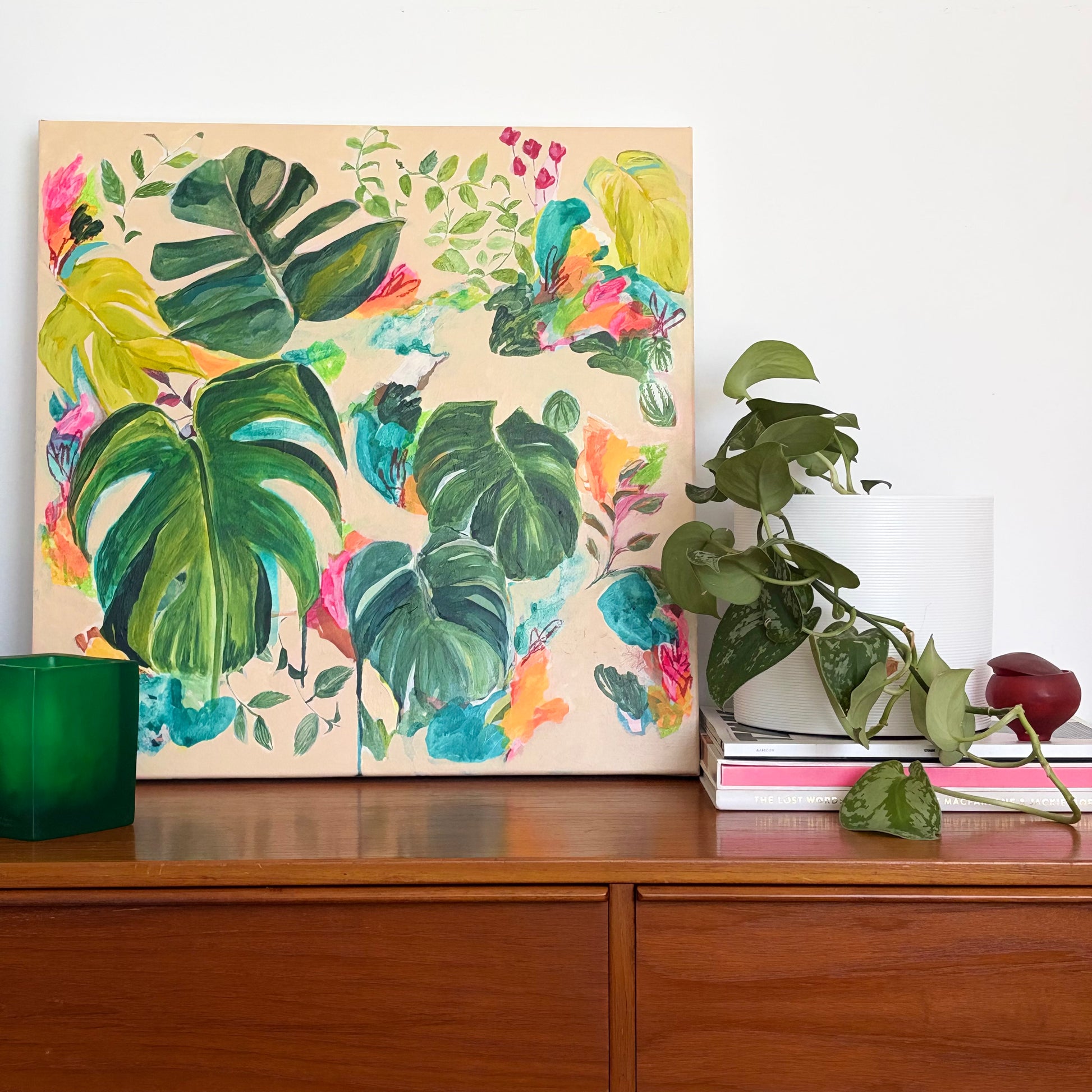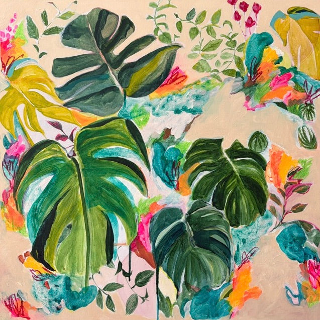 A botanical still life painting Vanessa has created of her lovely monstera plant that is taking over her space. Vanessa is passionate about her surroundings, plants and environment, and has created a series of intuitive abstract botanicals. These beautiful leafy pieces are an evolution of Vanessa's style and a way to free up her process and move away from her usual rigid still life artworks.